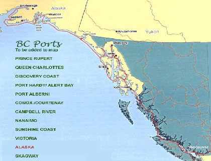 Map of ports on BC Alaska Cruises